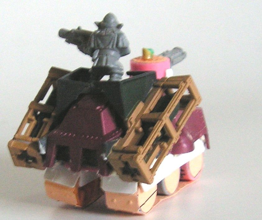 Après quelques réflexion, une tourelle avec un gros fling, et un lance missile pouvait parfaitement faire l’affaire. La lance missile provient d’une batterie lattérale de SD KFZ 251, une maquette vendue en magasine il y a quelques mois déjà. Le gros fling provient est en fait un « fling » venant d’une grappe d’ork ancienne (V3 ?).