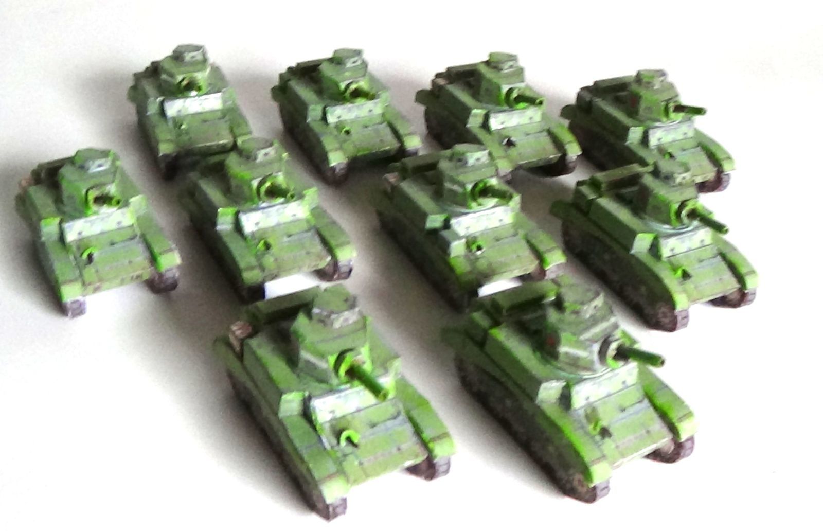 Le principal avantage des Stuart est leur faible coût tout en offrant un petit canon et deux mitrailleuses !!! Cela permet d’engager les blindés légers, l’artillerie et l’infanterie adverses. Toutefois, il ne faut pas oublier qu’il s’agit de blindés légers. Ils sont donc particulièrement vulnérables à toutes armes anti-char (Panzerfaust, canon antichar et anti-aérien… ). Leur mobilité (40cm) est un atout incontestable. Cela leur permet d’attaquer les blindés adverses sur leur blindage arrière… si on a pas d’autres choix. Ou d’aller capturer rapidement un objectif. Toutefois, la règle « Mère et poussins » en vigueur dans l’Armée rouge est un réel handicap à tout mouvement tactique. Si blindé du chef de « platoon » est immobilisé, voire détruit. Tous les blindés du platoon sont immobilisés. C’est d’ailleurs la raison pour laquelle les blindés soviétiques coutent aussi peu de points.