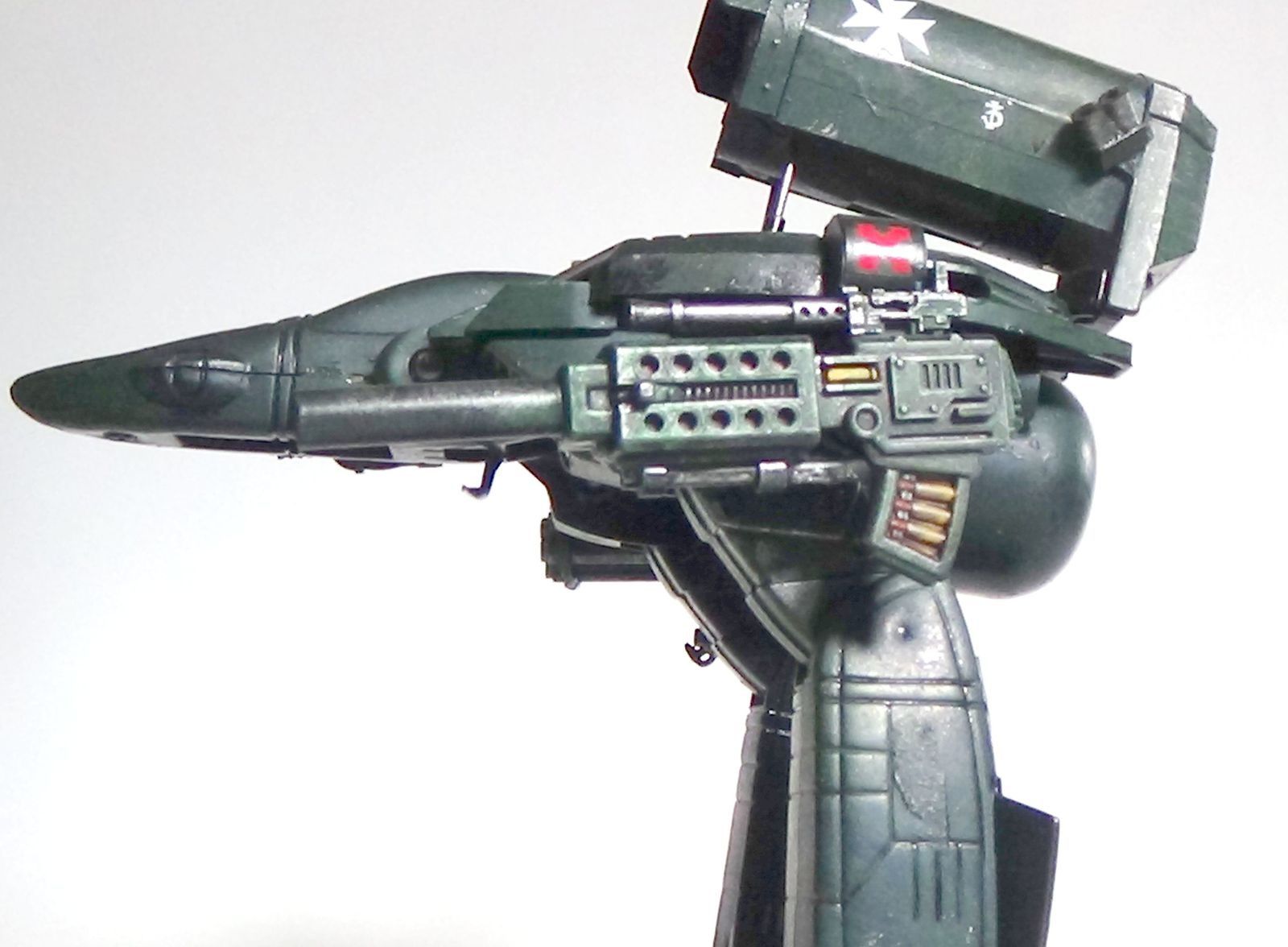 J’avais oublié de mettre les lance flammes montés avec le canon Gatling du Crusader !!! Ce qui me mit dans l’embarras lors de la première partie. Ce qui a été modifié depuis.