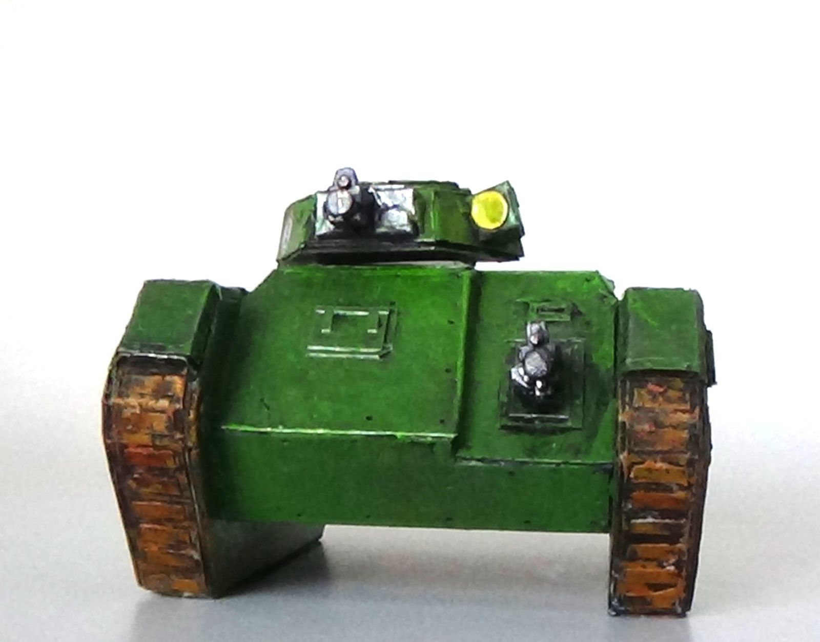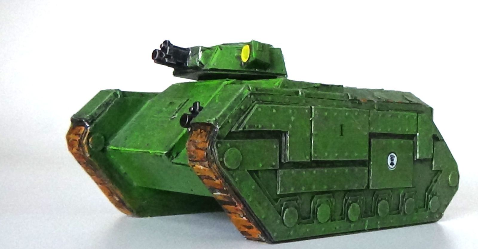 A l'heure actuelle, j'hésite entre une Chimère armée d'un autocanon (dont les règles proviennent de Forge World) et un engin du Génie basé sur le même châssis (là encore « Forge World »). Mais comme j'ai un véhicule ork plus ou moins en chantier…