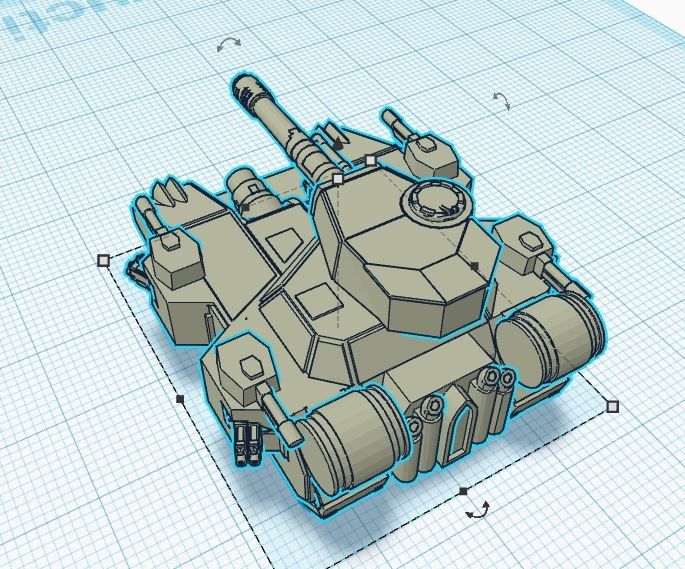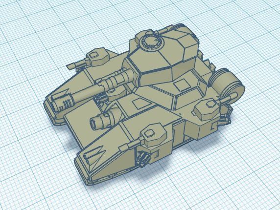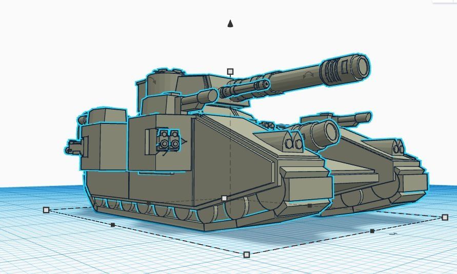 BiancaW a créé de nombreux modèle 3D. Ce sont des modèles simples, faciles à imprimer, mais complets. Bref, le genre de travail que j’apprécie. Le baneblade a de nombreuses versions, mais pour une fois, je voulais le modèle avec le maximum de tourelles latérales. J’ai donc copié le modèle de BiancaW. J’ai tronqué le char. Me retrouvant avec les tourelles latérales. Elles ont elles aussi été copiés. J’ai inversé la position de ces doubles. Sur le modèle initial du Baneblade. Les tourelles latérales ont été supprimées. Il a été plus facile de repositionner les quatre tourelles latérales. Au final, je me retrouve avec un baneblade qui sort de l’ordinaire, mais qui correspond tout à fait aux engins décrits dans les livres de Games Workshop. Mais qui sort de l’ordinaire…