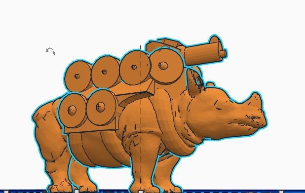 Bref, j’ai repris l’idée et j’ai décidé de faire mon propre Squiggoht pour mon armée ork à Epic. La base est un rhino, non le transport de troupe space marine, mais la grosse bête. Sur ce modèle trouvé sur … Tinkercad (merci à la personne anonyme qui l’a modélisé), j’ai tout simplement fait un harnais avec une plateforme. Sur cette plateforme repose une tourelle (peut être trop petite). Des boucliers ronds sont ajoutés. Une rangée sur l’arrière sera ajoutée bientôt. Ainsi fait, je trouve mon modèle trop chargé sur l’avant.