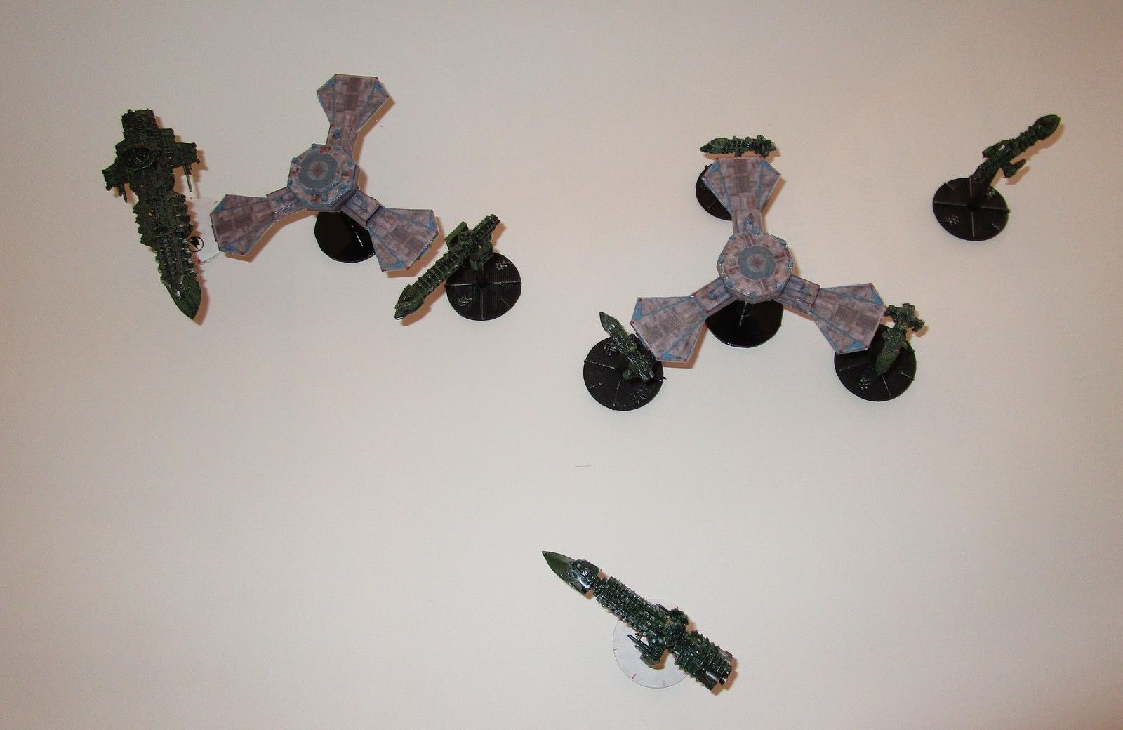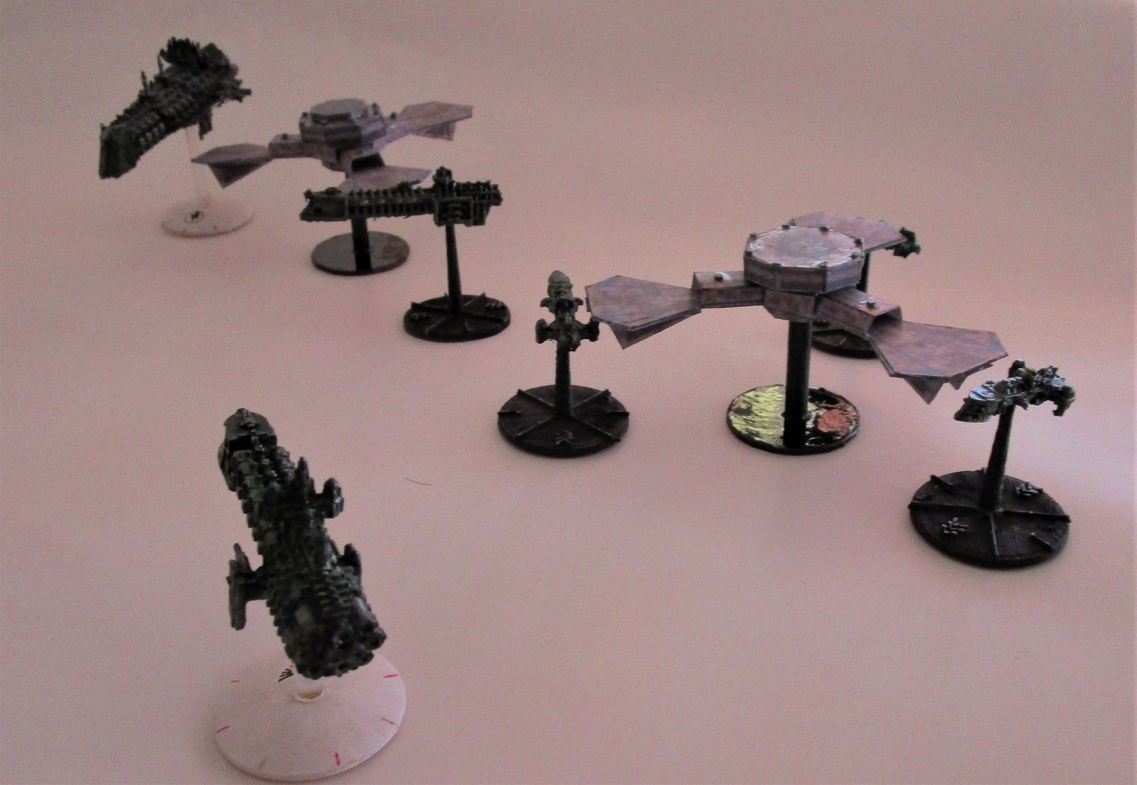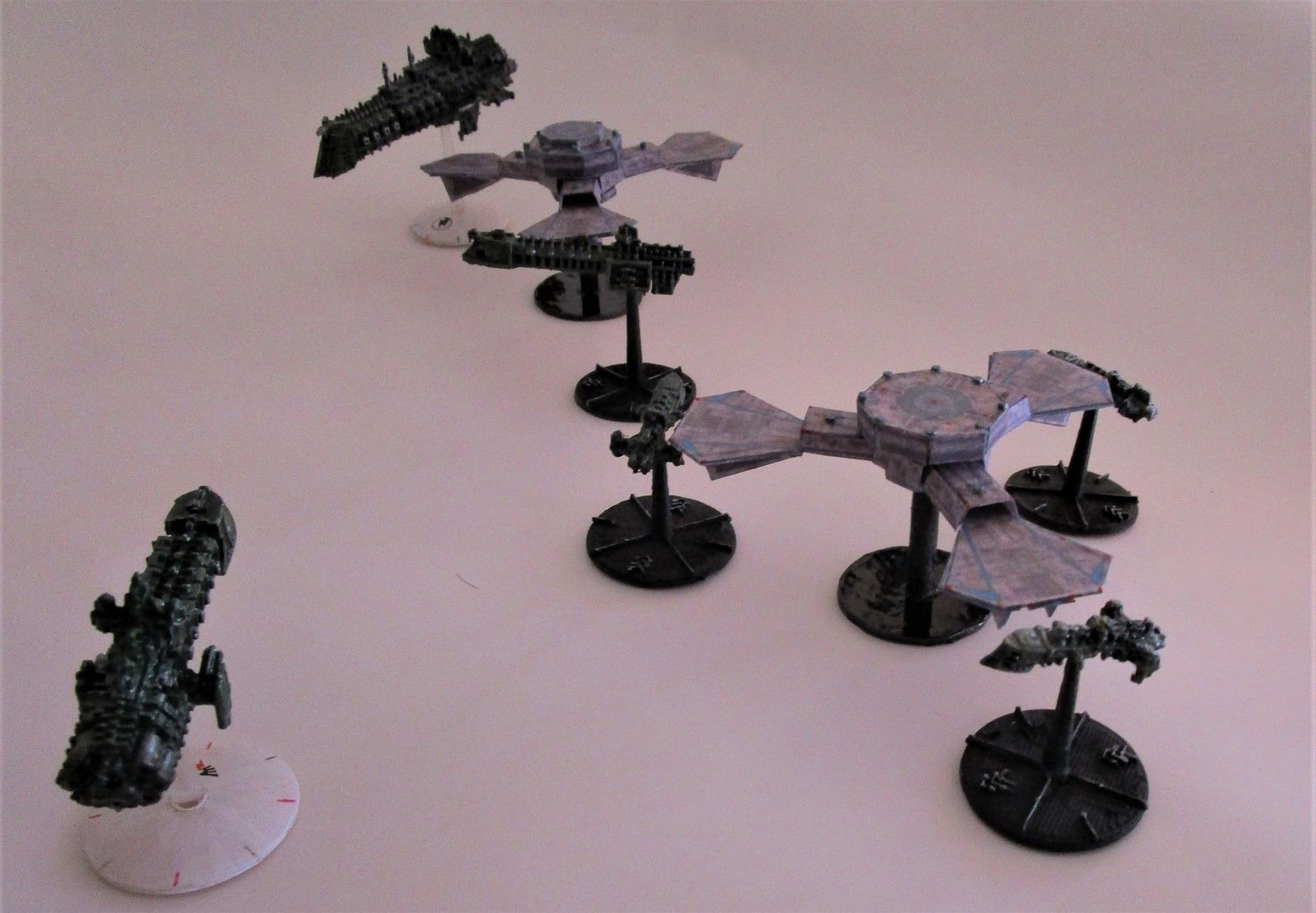 Deux docks ont été faits. Mais au départ, je voulais les empiler l’un sur l’autre pour faire une gigantesque station spatiale. Mon cadet (qui a mis la main sur l’ensemble de mes (ex) figurines de Bfg) a préféré deux docks à une énorme station … qui serait bien trop différente des modèles de l’univers de battle fleet gothic.